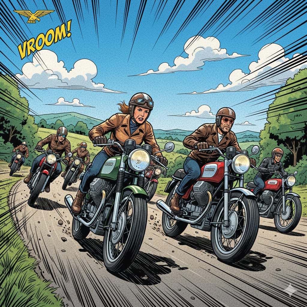 * Benzingespräche: Im Mittelpunkt steht natürlich die Moto Guzzi – das Eisen, der Sound, die Leidenschaft.