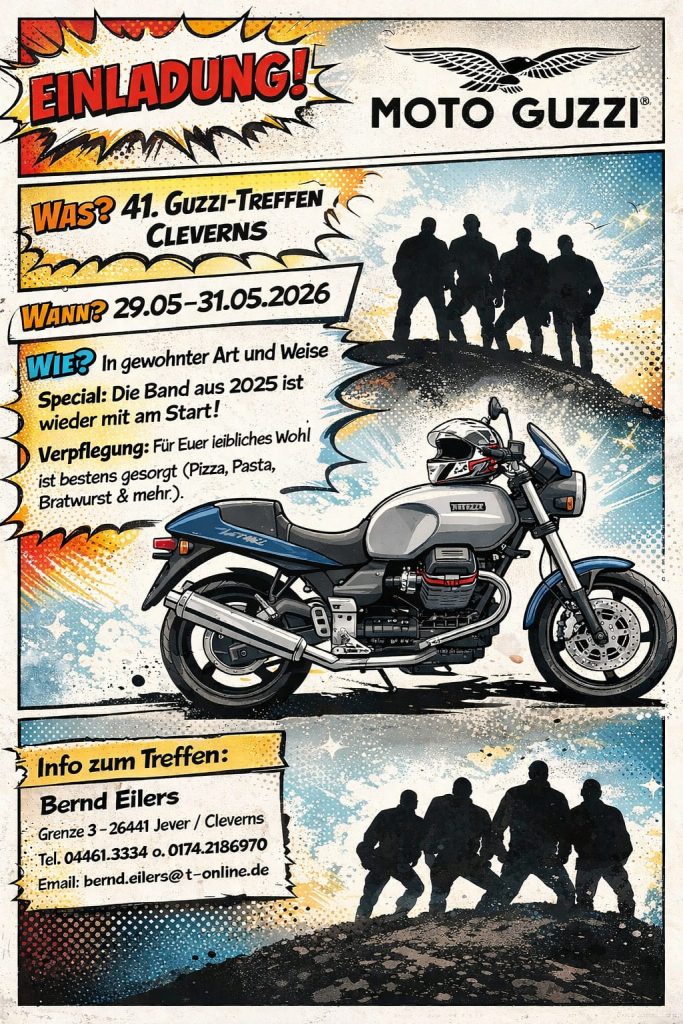 Einladung zum 33.Moto Guzzi Treffen MGC Paderborn – Das Original! Liebe Guzzisti und Freunde des gepflegten Zweizylinders, es ist wieder soweit! Wir laden euch herzlich zu unserem legendären Treffen ein.…